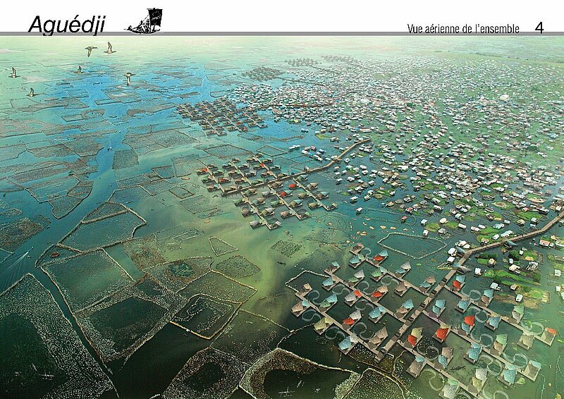 The approach reconstructs the urban scale, questioning the link between a lakeside village with its population increasing day by day, and the capital Cotonou, essential for daily exchanges.