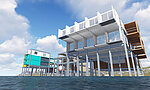 The rise in sea level is an inevitable fate. Areas along the coast line of Mauritius, other islands of the Archipelagos and Eastern Africa will definitely be affected. The C-TY Project, The C-Shift is a concept which is geared towards adaptive living on the sea, which aims at preserving the habitats and the livelihood along the coastlines by setting up a modular, adaptive and expandable city above the sea. This reduces land based population pressure by not uprooting and relocating these people inland. The C-Shift uses shipping containers which can be retrofitted with the desired functions; housing units, offices, commercial spaces, gathering spaces, recreational spaces, research centres and universities and the technical installations required to sustain all these activities.