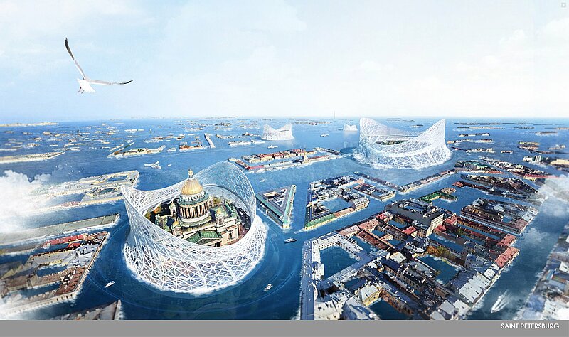 The source of inspiration was the drop of water, forming a crown on impact against a flat surface. It protects the inner part, and all this in harmony with its environment.