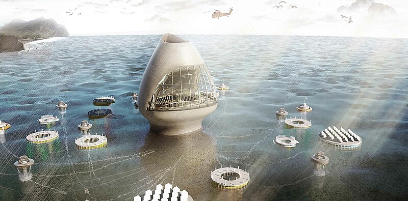 This coexistence is based on its supply archipelago, which acts as a seed of life in a technological device. Its islands, which initially serve only to supply the device, become biological catalysts that propagate marine flora and attract fish and fauna. In the ocean, the big fish always eats the small one, so eventually the device's hull, or exoskeleton, would become an ecosystem of artificial origin.