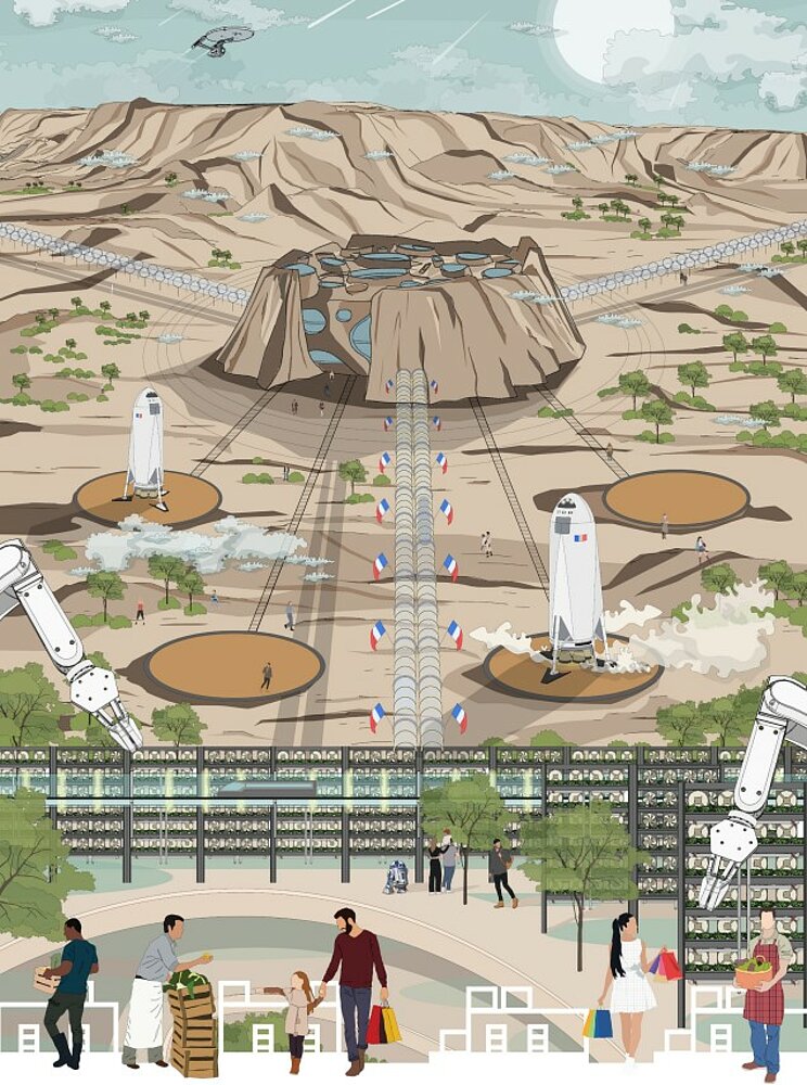 Space MARStopie Year2021MARStopie est un système autosuffisant extensible. Les iso-surface imitents les structures micro-osseuses et l'environnement de mars pour former un abri naturel. Ryan WONG Chinese