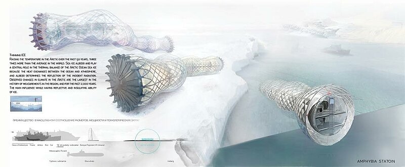 Responding to extreme condition of Arctic environment (the moving waters of permafrost) the kinematic scientific station adapts, survives and pursue the goal of scientists, discovering the great wonder of magnetic field and polar shifts. Locomotion of station is based on biomimetical principles of hydrostat animals abstracted through soft robotics domain. The main challenge was to shift further from moving object toward the moving habitat and bringing the amphybiotic architecture into life. Important component of the project, is self sufficiency and autonomy of the organization - Ability to operate in extreme conditions, combining the structural stability and spatial flexibility. Facing the complex engineering problem of structural grid of multiple deformable bearing elements within the simplistic kinematic mechanism.
