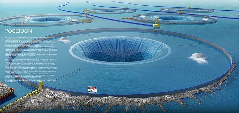 Poseidon is a self-sustain submarine desalination plant that provides acess to clean water from the sea for any part of the world who needs desalined water. The main idea of poseidon is to use hydroelectric technique to power the reverse-osmosis plant, thus the unit does not require external power source.