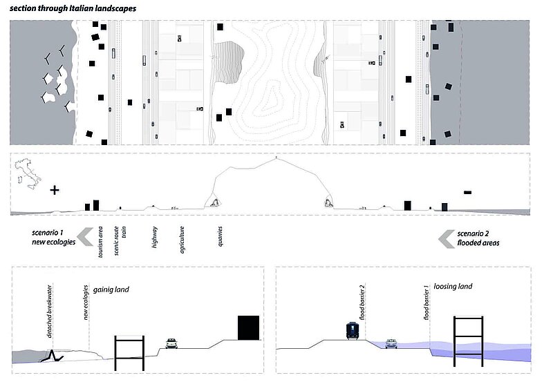 Italy has a unique geography with the highest risk of erosion in Europe. Given that a majority of the country's population lives in proximity to the coast this is a threat not only to the environment but also to the inhabitants. I propose a series of steps to be undertaken jointly by companies and individuals to create new coastal surface using the hydrodynamic behaviour of detached breakwaters as a tool. New breakwaters formed with on-site available resources protect the coast and to benefit the coastal communities and create new natural ecologies through participatory means.