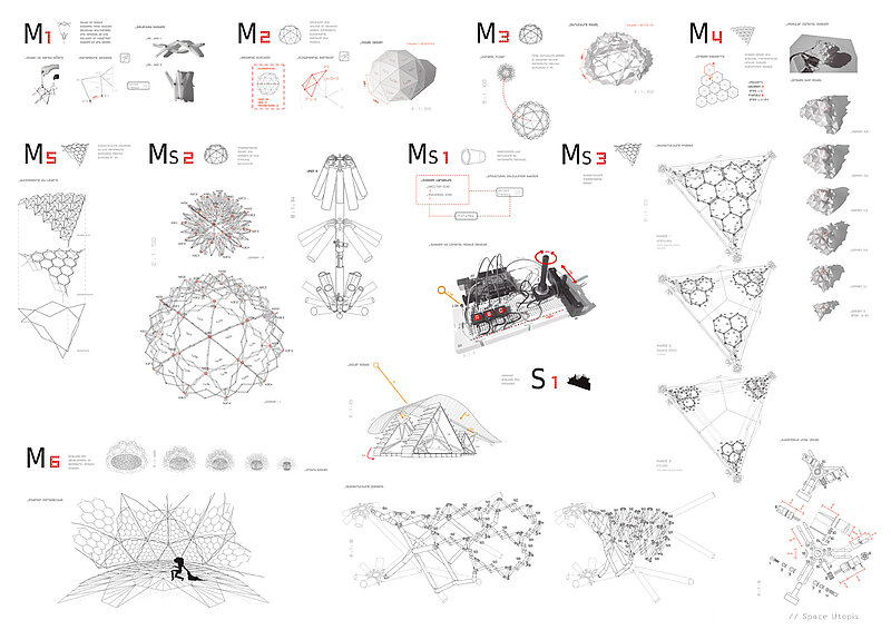 A multidisciplinary research project developed at different scales in the form of an interdimensional network in a probable future on earth or other planets. Setting of the genes of an organism able to analyze problems and find creative solutions in relation to the multiple information levels encountered during his life. The physical result is a network of bio architecture influenced by mobile infrastructure.