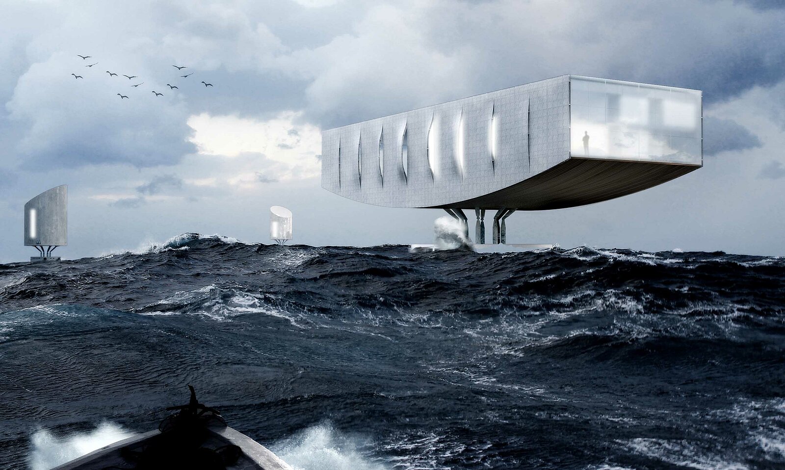 Floating Giants is a term that encompasses three types of floating inhabitable modules that all share a common structure--a spar column containing data servers. The first is a fish hatchery which provides full amenities for cod farming from spawning to harvesting. The hatchery utilizes a customized heat transfer system that takes excess heat from the data servers below and warms up the water for the spawning tanks above. The second is a research station with laboratories and equipment for monitoring ecological life in the north atlantic and the arctic oceans (including monitoring the state of the fish being farmed). The third module is a power station which employs an arsenal of Pelamis Wave Harvesters that transform kinetic wave energy into electricity. The electricity is then fed to the research station and fish hatcheries. Thus, all three modules are not only programmatically symbiotic, but also energy co-dependent.